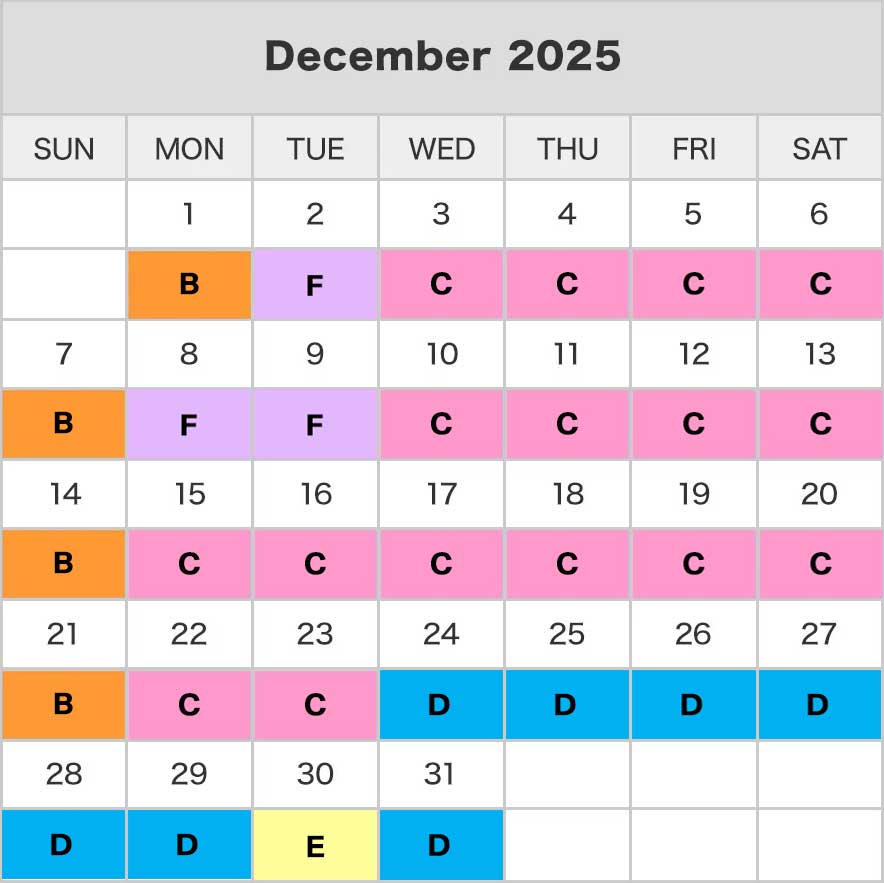 C Category : ช่วงวันเสาร์ และวันอาทิตย์ รวมถึงวันธรรมดาในฤดูกาลปกติและฤดูกาลท่องเที่ยว